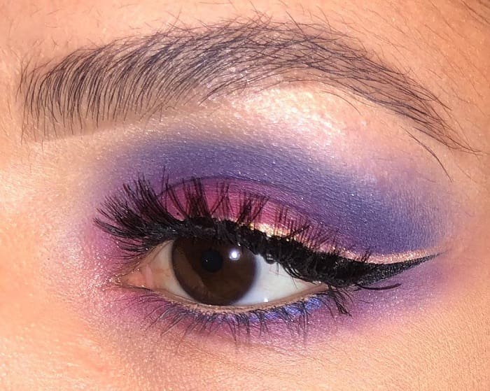 Ideal for: Ladies with an oval face up and calorie-free-colored pilus and a broad brow can achieve this look with blueish eyeliner and purple and coral eyeshadows.